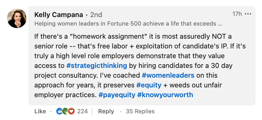 “If there's a homework assignment,” Leadership and Life Coach Kelly Campana wrote, “it is most assuredly not a senior role.”