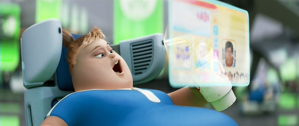 The humans in the 2008 Pixar film “Wall-E” have all their lifestyle needs served by robots. Is that where we’re headed? (Pixar)