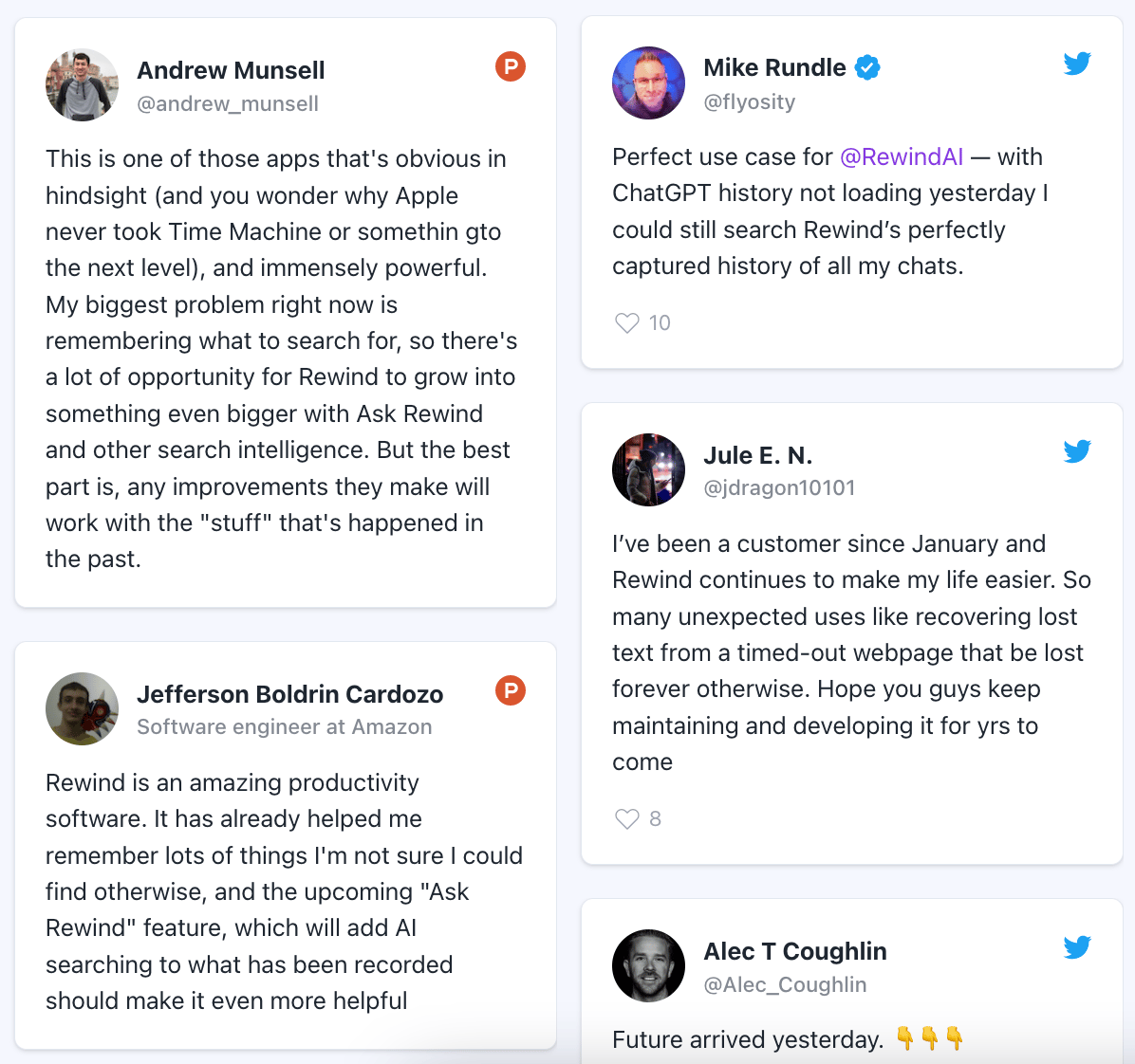 Rewind doesn't seem like an especially unique bit of software. What stopping Apple, Microsoft, Alphabet, OpenAI, or Elon's new company x.ai from literally doing the same thing?